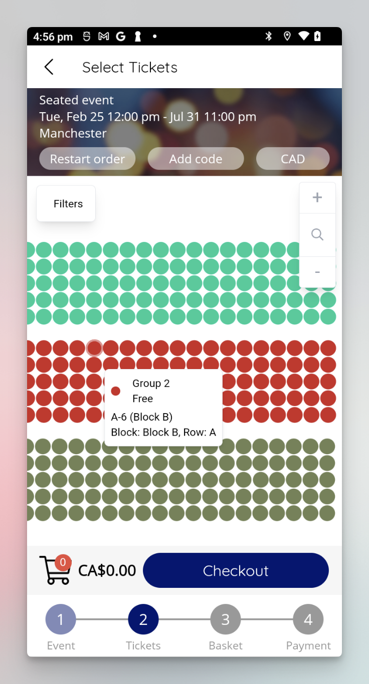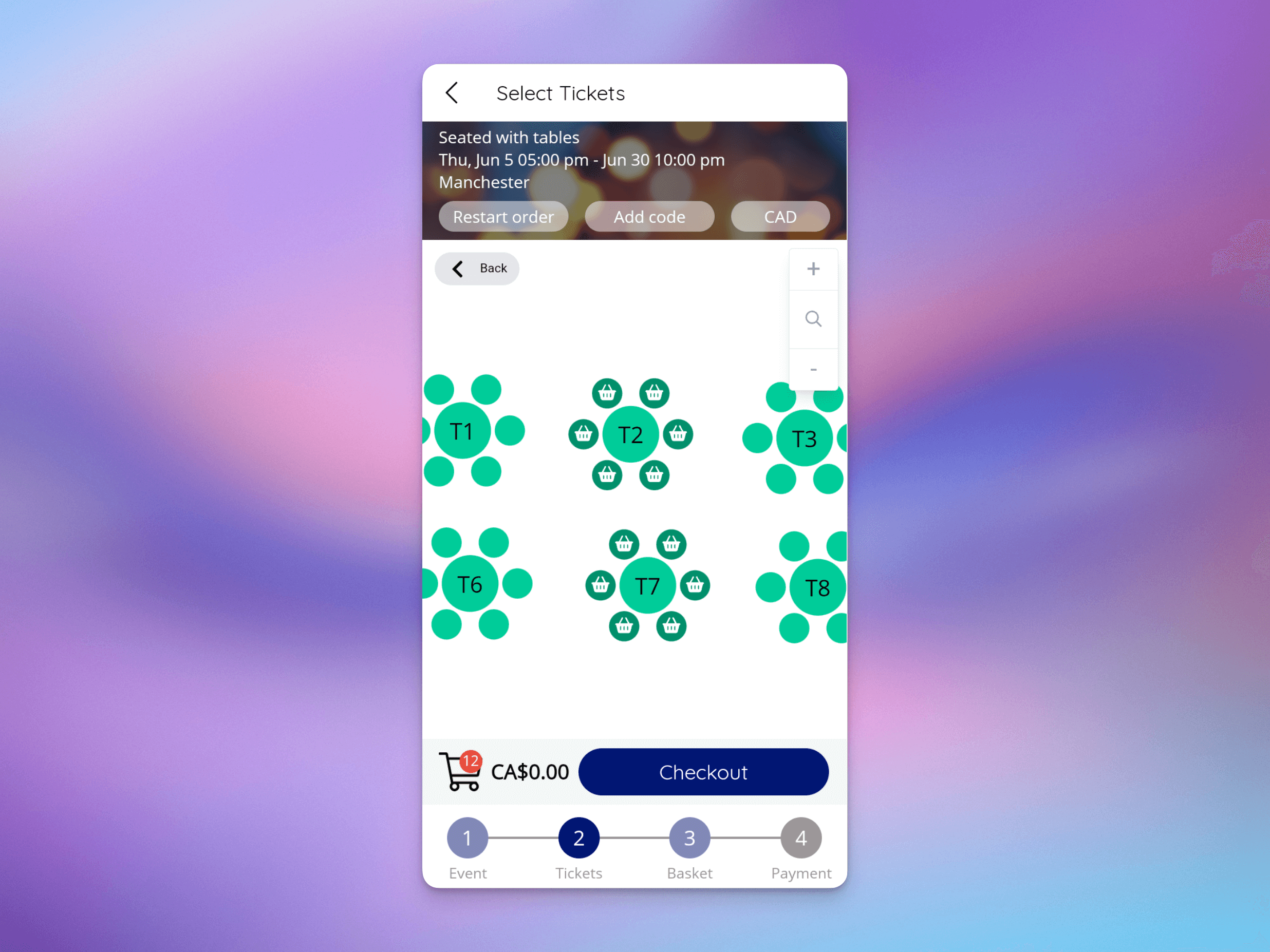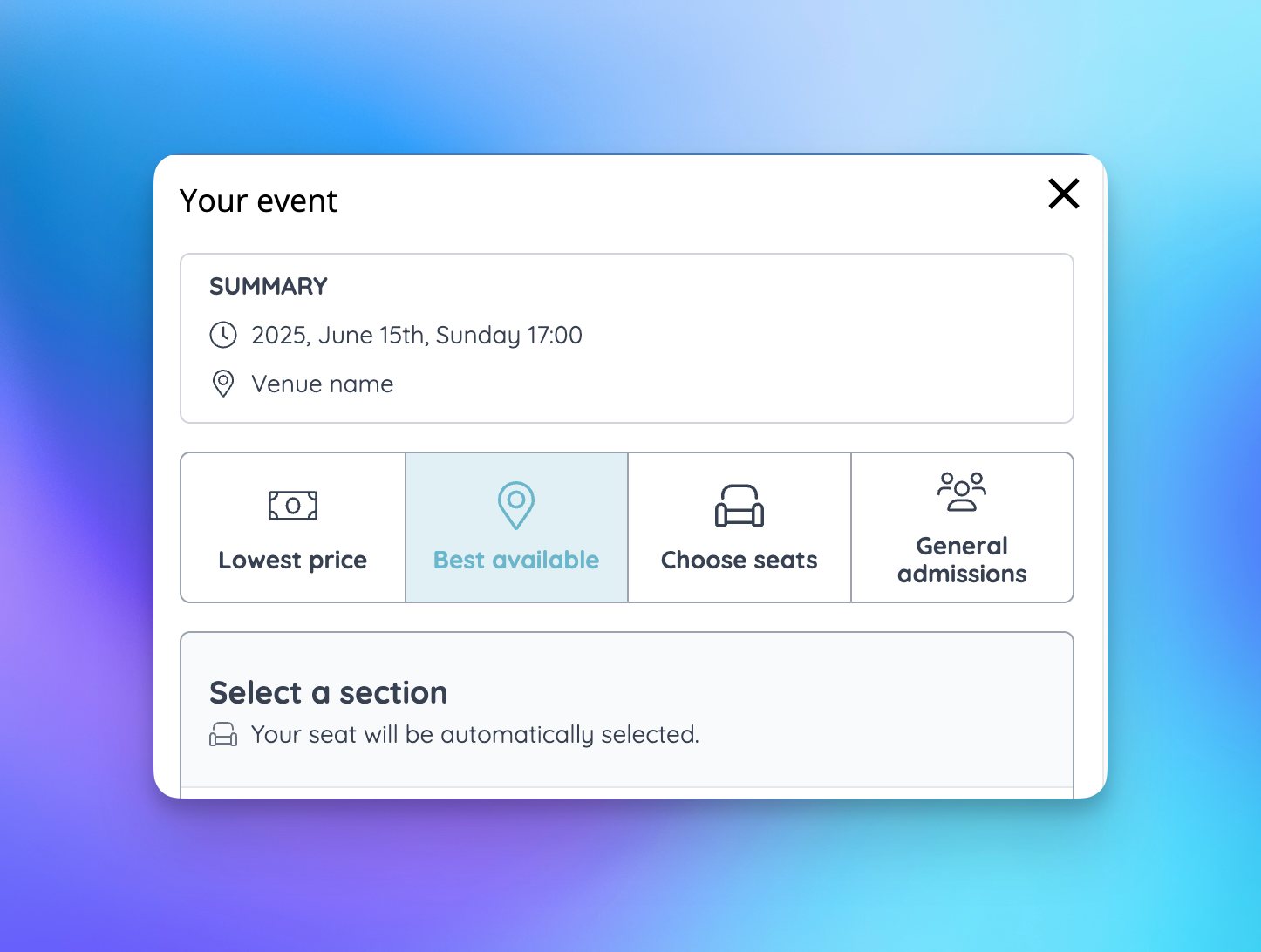 Purchase flowOnce listed, items are made available alongside primary tickets, for both seated (including GA) and non-seated events