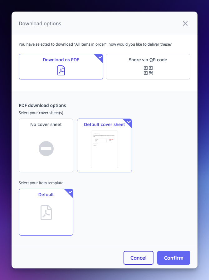 • [NG-10716] An order’s available download options, including cover sheets and item template selections, are now correctly scoped for both parent and child company admins.