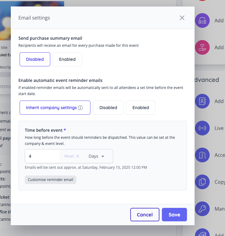 ResaleThis release we introduce version 1 of our resale product which sits alongside primary ticket sales to allow customers to purchase verified resale tickets with confidence.Resale settingsThe resale experience is fully customisable - defaults can be defined at the company level, whilst allowing event and item level overrides to be set.